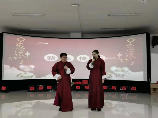 接下来,活动进入联欢会阶段,首先是德高望重的老教师们为大家带来了气势磅礴的诗朗诵《我骄傲,我是中国人》,随后王林老师《上海滩》独唱引人入胜,张毅飞老师和孙冬阳老师的小品《忍不了》延续了去年联欢会的欢乐,女老师们的舞蹈《阿育王》舞姿动人、精彩纷呈最后,为庆祝2020年新年,全体老师分享了美味蛋糕,联欢会期间还穿插进行了多次抽奖活动,老师们欢声笑语喜迎新春,感受着学院大家庭的温暖,也纷纷祝愿学院双高建设顺利推进,学院明天更好美好。